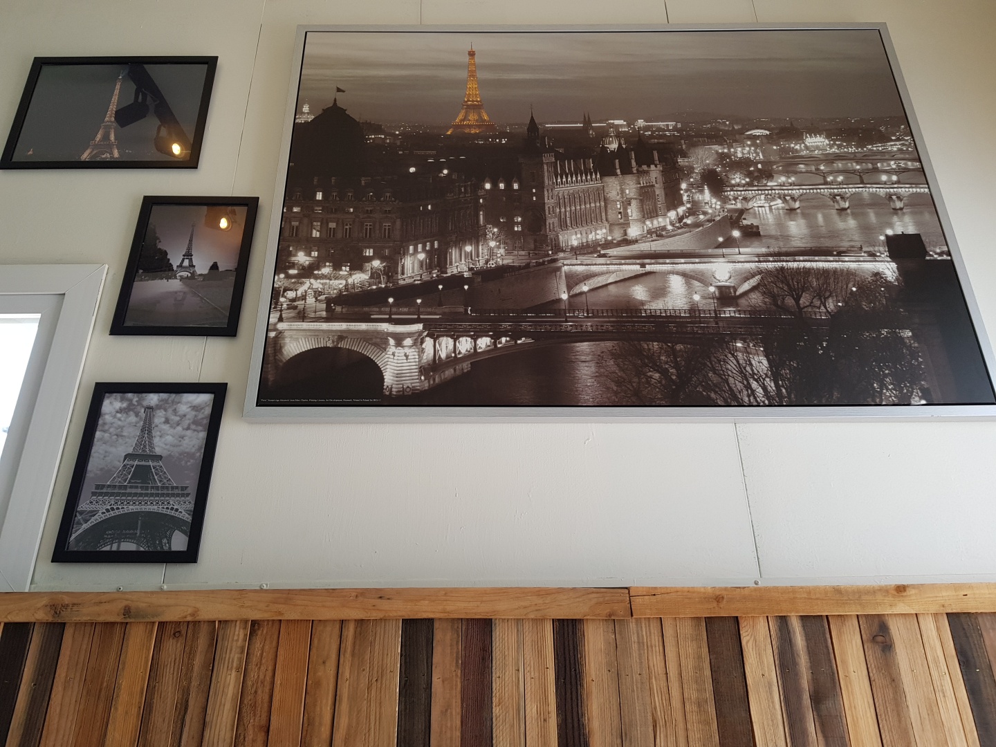 대기장소에 파리, 에펠탑 사진이 걸려있어요.